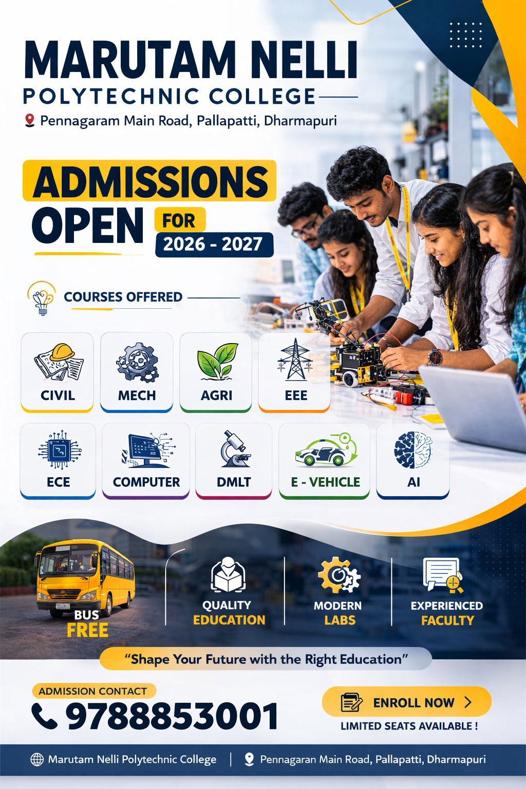 The institution offers a variety of diploma programs in engineering and technology, including Civil Engineering, Mechanical Engineering,...